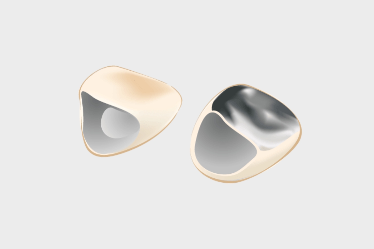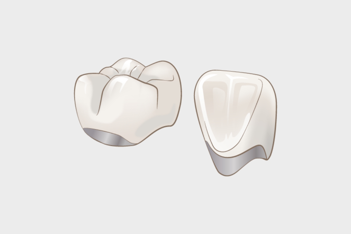 金属フレームにセラミックを焼き付けたクラウンです。セラミックは透明感があり、歯の先端部分の見た目は自然で美しく仕上がります。ただし、金属フレームがあるため根元部分の透明感はやや劣り、歯ぐきが下がると金属が見えてしまうことがあります。