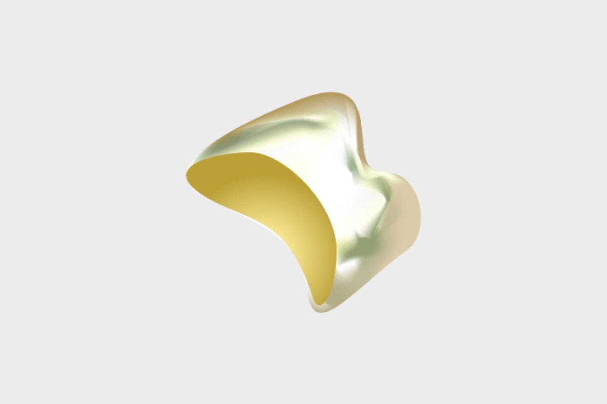 高純度の金を使用したクラウンです。金属なので、耐久性が非常に高く、衝撃で破損する可能性が低い素材です。