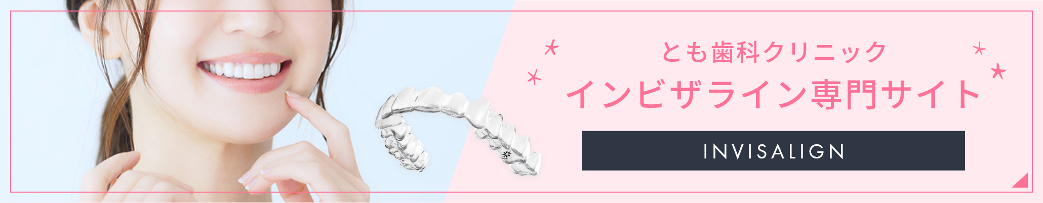 透明なマウスピースタイプの矯正装置です。ブラケットやワイヤーを使用しないため、付けているのがほとんどわかりません。マウスピースを2週間ごとに新しいものに付け替えていくことで歯並びを改善していきます。